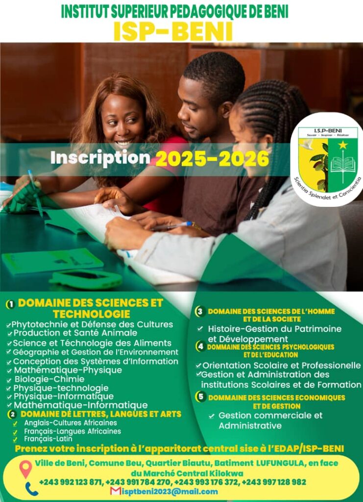« L’année commence avec le cours d’Anglais commercial, et nous invitons tous les jeunes à venir embrasser les différentes options que nous offrons. À l’ISP/Beni, nous formons pour l’avenir », a conclu le Professeur Mbusa Muvughe Abner.