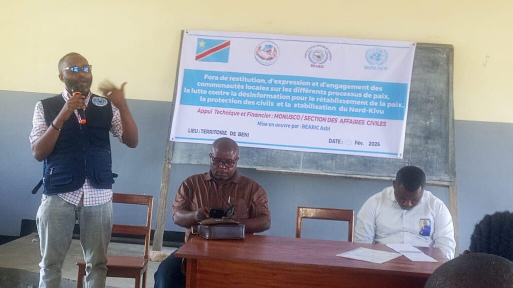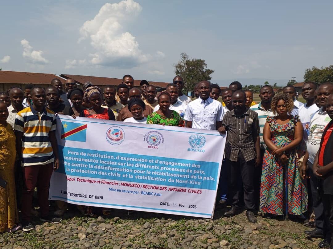Un forum de paix a réuni ce vendredi plusieurs couches de la population locale ainsi que des leaders communautaires dans la commune de Bulongo, territoire de Beni, au Nord-Kivu. L’événement, soutenu par BEARIC Asbl, visait à renforcer les initiatives de paix dans la région.